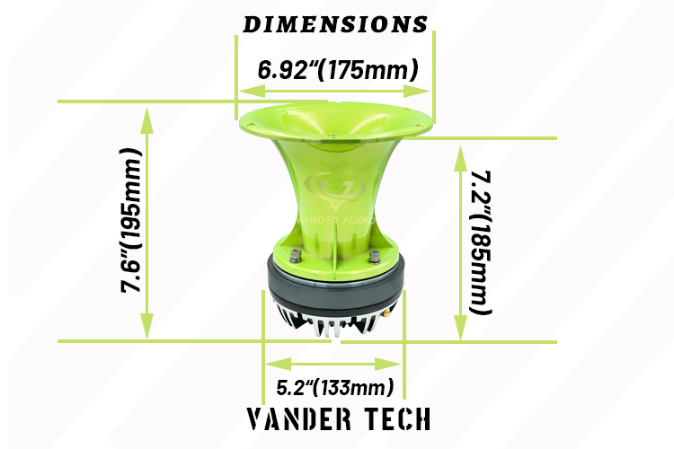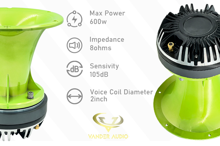 Vander Audio 2 Inch Exit Horn Waveguide GREEN CR for Bolt On Compression Drivers - Green UV Resistant Chrome Finish Driver Guide